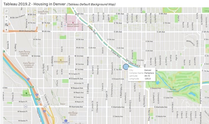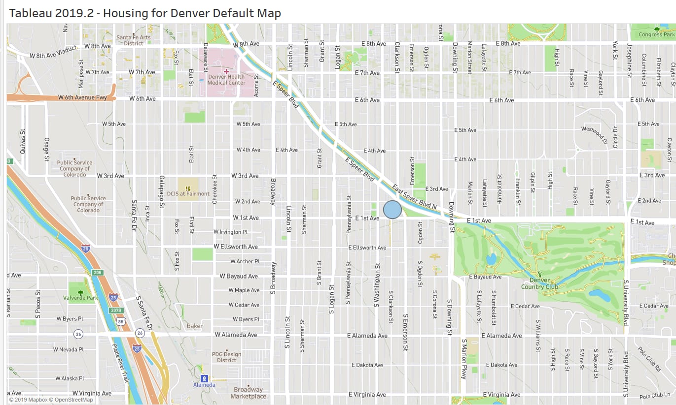 Prior to 2019.2, the default maps in Tableau would turn fuzzy when you zoomed in (especially to the street level). To illustrate this, we have created three worksheets showing the same location in Denver, Colorado using 2019.1, 2019.1 with Mapbox, and 2019.2.