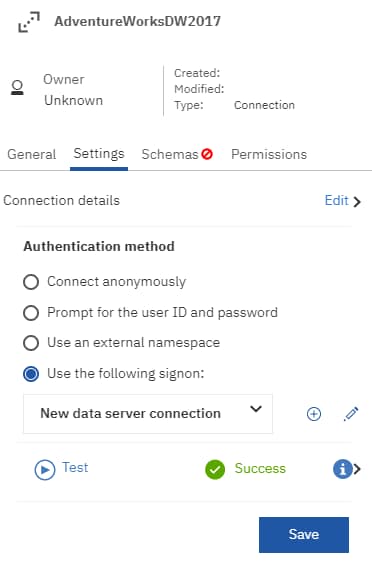 Next, load the metadata for the schema. This process is not intuitive. It is buried under Data Source → Connections → Schemas.