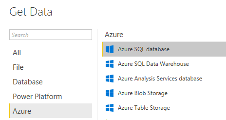 To begin, we use Get Data to connect to our Azure SQL database using a live connection.