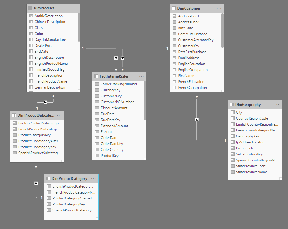 We will focus on a subset of tables from this dataset that already have relationships established at the database level