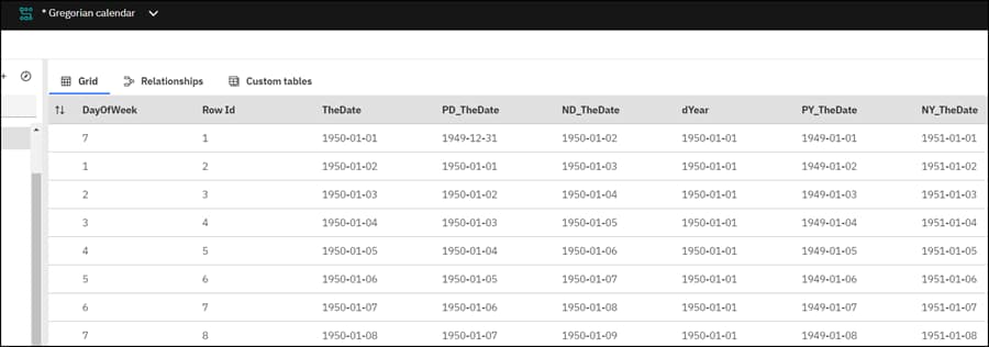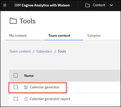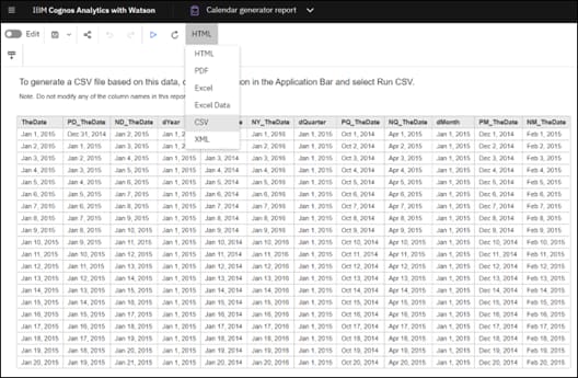 IBM provides a calendar generator report in the Tools folder (shown below). We can run this report and create our own version of the CSV file that we will modify: