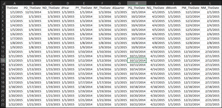 As you can see, the fields are easy to decipher. The key field is the TheDate field. All the other relative time-based fields are based on this key field.