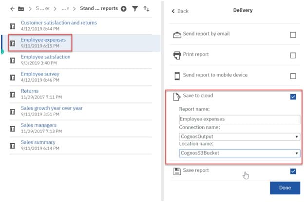 Using Cloud Object Storage provides a useful way to reduce your user load. Users can grab the reports and info they need without having to log in to Cognos, run a report and use system resources.