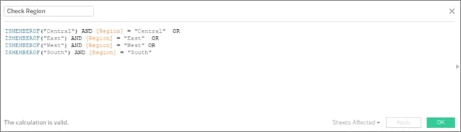 - Drag the newly created Check Region calculated field to the Filters Card. Do this for every worksheet you need to secure.
